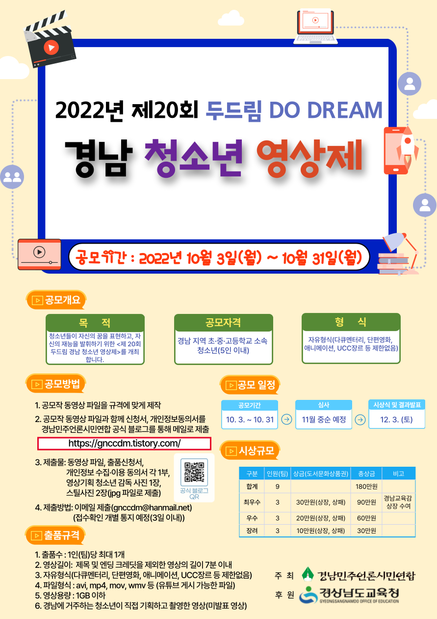 2022년 제20회 두드림 경남 청소년 영상제 안내